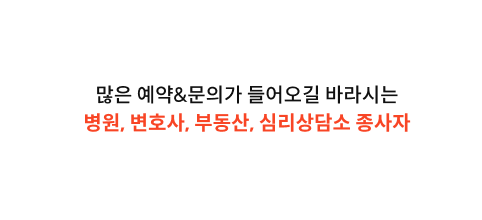쇼핑몰, 교육사이트, 외주업체, 서비스/솔루션 기업, 병원, 학원, 변호사, 세무사, 부동산, 인테리어, 심리상담소 등등…